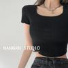 Damen Koreanischer Stil Slim Fit Weiter U-Ausschnitt Crop Top - Unifarben, Kurzarm, Oversized, Sommer Layer.