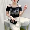 Sommer 2024 Strass Doppel-Lagen Eis-Seide Schulterfrei Rückenbluse