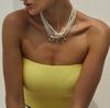 Einfache Imitationsperlen-Schlüsselbeinkette in Seesternform, modisch und vielseitig, gestapelt getragen, Damen tragen Schleifenhalsketten