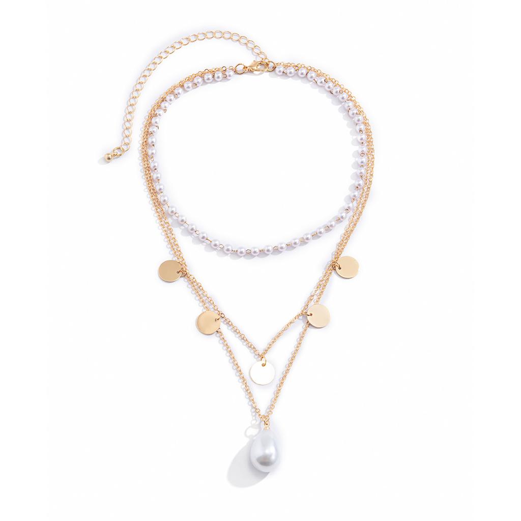 Accessoires, Temperament Imitationsperle geometrische Quaste mehrlagige Halskette, vielseitige einfache Wassertropfen Anhänger Halskette
