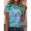 Damenmode Casual Sommer Frühling Farbblockdruck Kurzarm O-Ausschnitt Blusen & Hemden