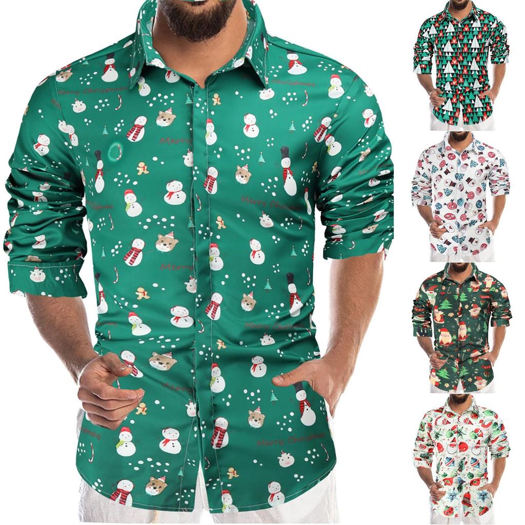 Herrenmode Lässiges Druckhemd Weihnachten 3D-Digitaldruckhemd Langarmhemd