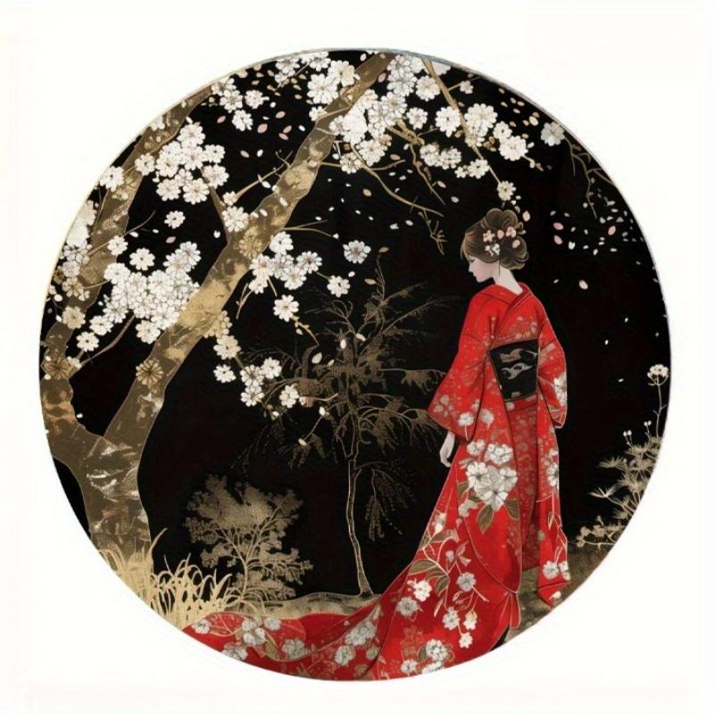 2d Flat 20*20cm, Round Wooden Wall Sign, Japanese Kimono Decorative, Easy Install, Durable Kimono Theme, for Bar, Cafe, Club, Home, Room Wall Decor,