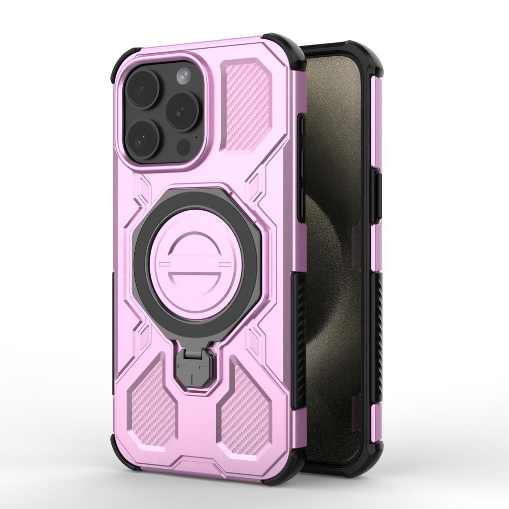 For iPhone 15 Pro Max Magnetic Case Rotating Metal Kickstand Shockproof PC+TPU Phone Back Cover