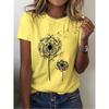 Sommer Rundhals 3D Löwenzahn Print Top Modische Lässige Kurzarm Damen T-Shirts