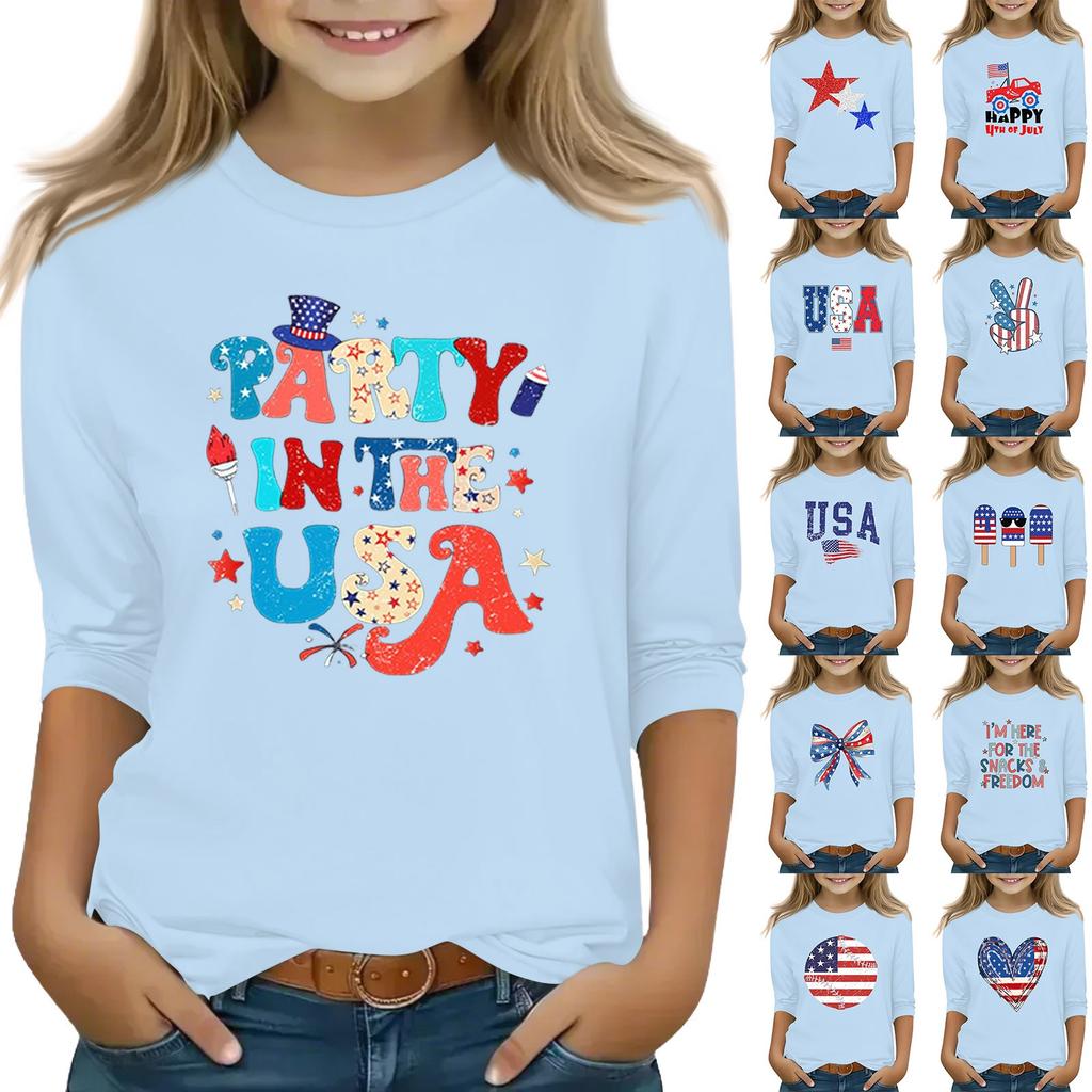 Druckoberteile für junge Mädchen 3-10 Jahre Rundhals 3/4-Ärmel T-Shirts Trendige Oberteile Outfit T-Shirts