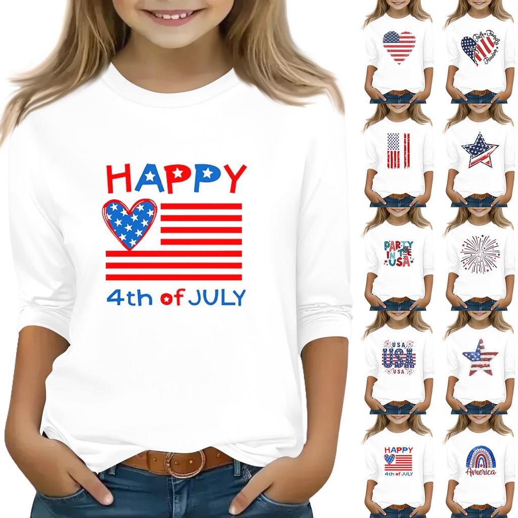 Druckoberteile für junge Mädchen 3-10 Jahre Rundhals 3/4-Ärmel T-Shirts Trendige Oberteile Outfit T-Shirts