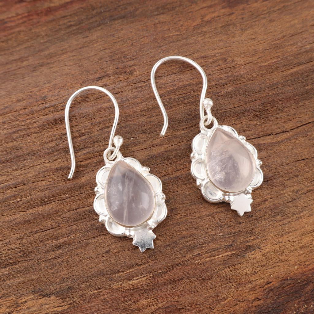 Rosenquarz Handgefertigte Edelstein-Ohrringe, 925 Sterlingsilber-Ohrringe, Einzigartiges Design Schmuck-Ohrringe für Frauen