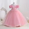 Europäisches & Amerikanisches Mädchen Mesh Puffrock Langes Prinzessinnenkleid - Formelle Blumenmädchen Abendgarderobe