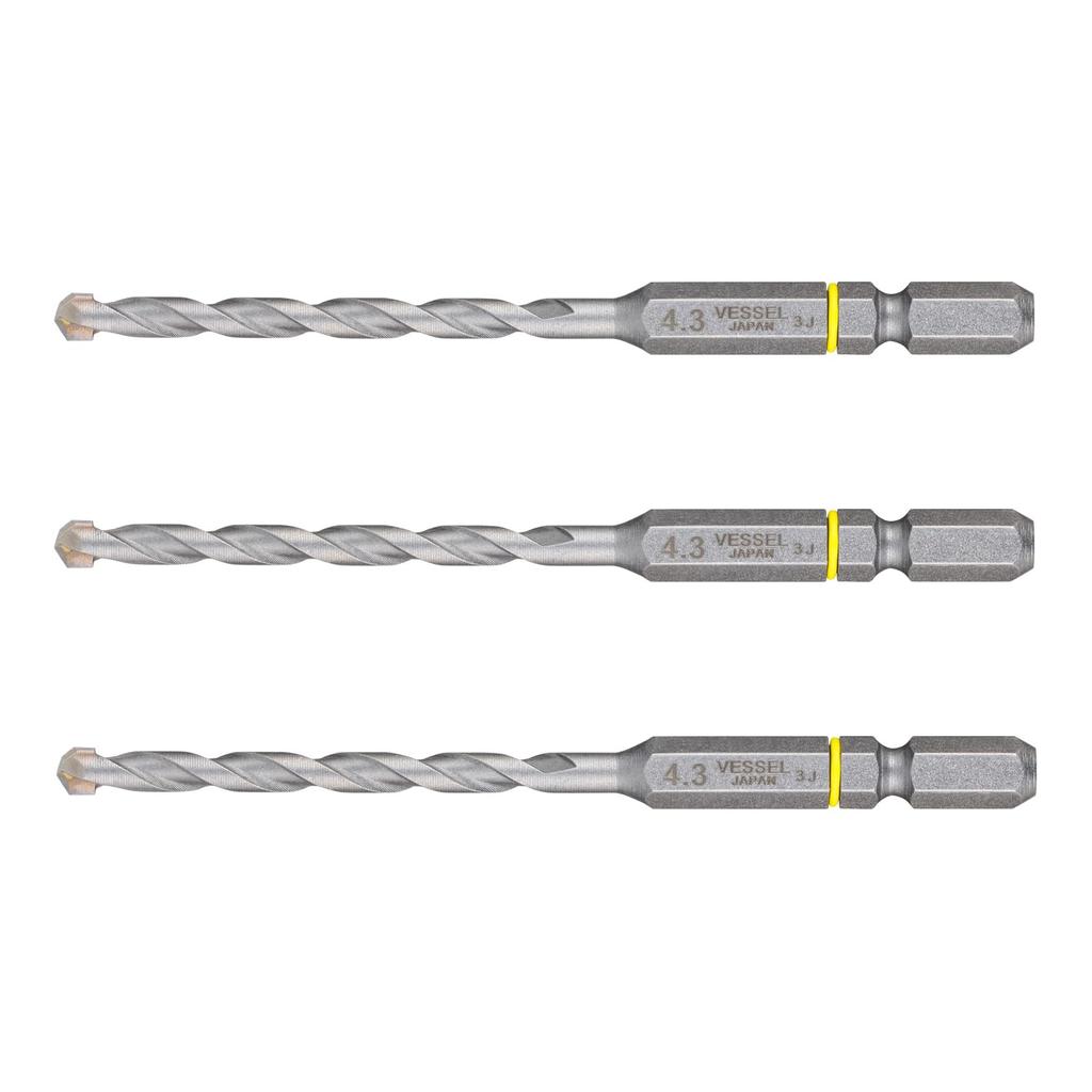 VESSEL Kissenbohrer Porzellanbohrer 3er-Set <Für Fliesen> 4,3 mm CPD3S-4.3
