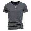 Summer Men's Solid Color CottonT-shirt V Neck Slim Fit Breathable Tops Casual Cozy Tees Classic Male Dailywear