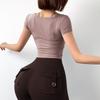 Zweiteiliger Effekt Neckholder Damen Yoga T-Shirt mit Brustpolster - Mesh-Stil Fitnessbekleidung