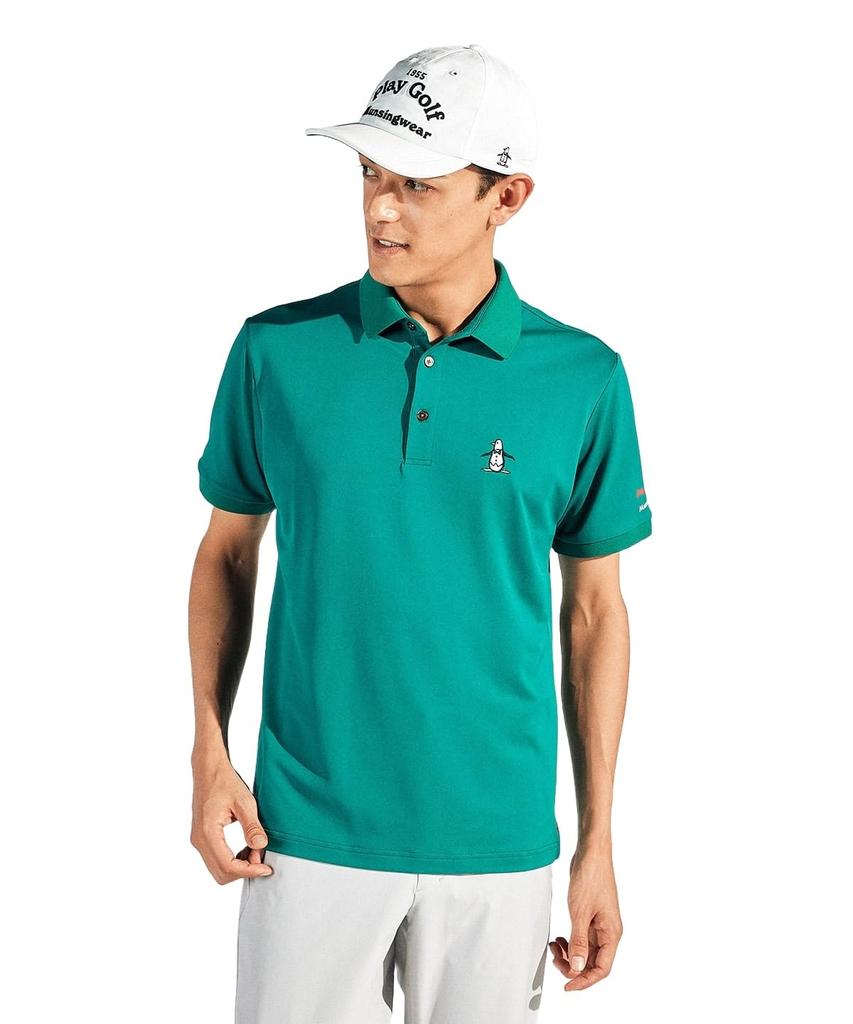 shirt with GR00 [Munsingwear] Short-sleeved collar, pique, stretch, sweat-wicking, quick-drying, sunscreen, golf, MG5SHS81M, men's, (green)