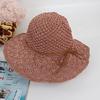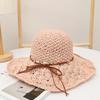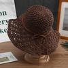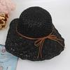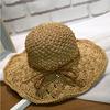 Handmade crochet straw hat women's foldable versatile bow travel vacation visor beach big eaves hat summer
