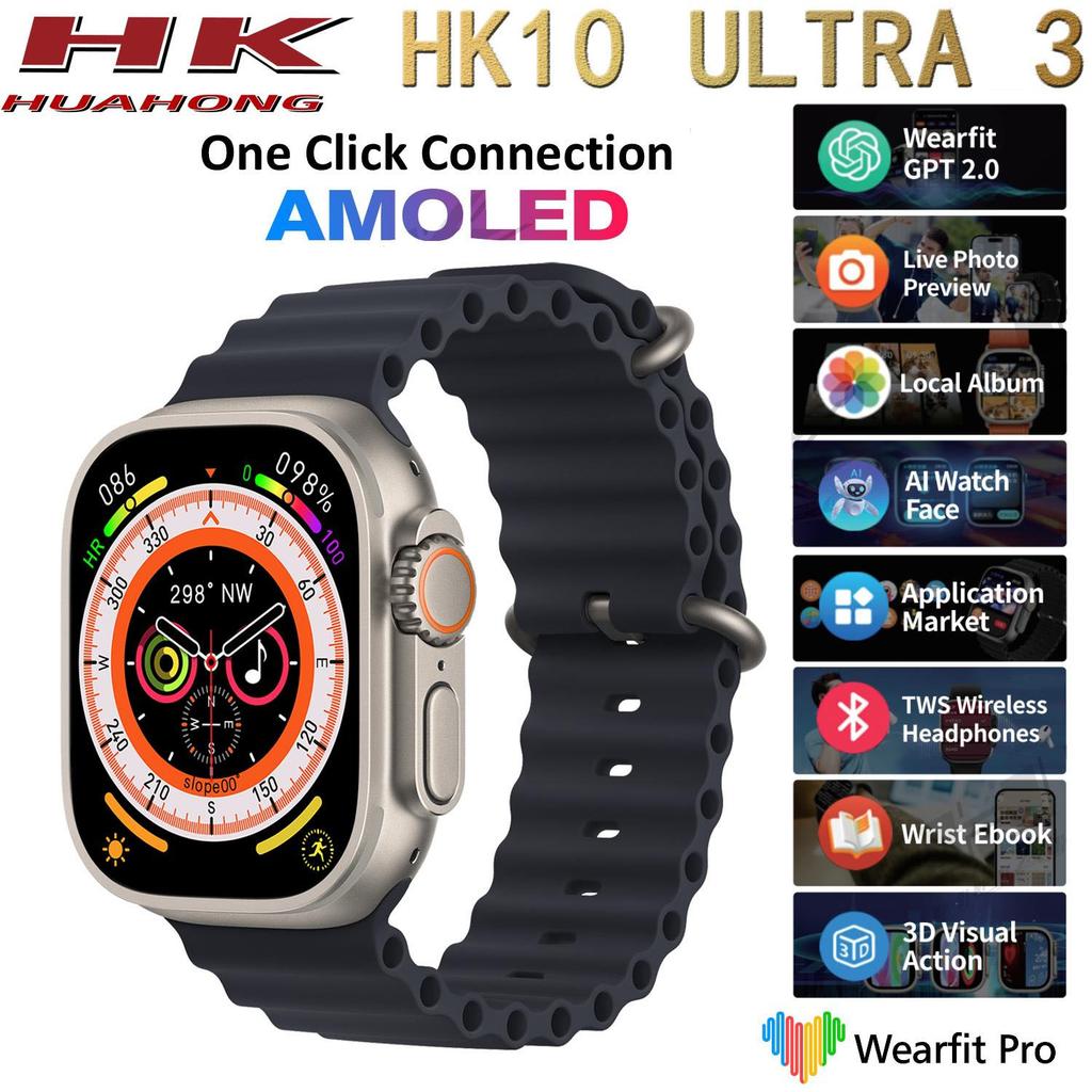 HK10 ULTRA 3 Amoled Bildschirm Smartwatch GEN4 Lokales Musikalbum 2GB ROM ChatGPT NFC TWS Smartwatch für Männer und Frauen