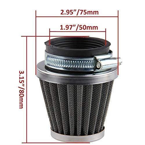 Filtre à air conique en métal avec collier de serrage Diamètre 50 mm Argenté Convient pour quads, mini motos et karts de 50 à 110