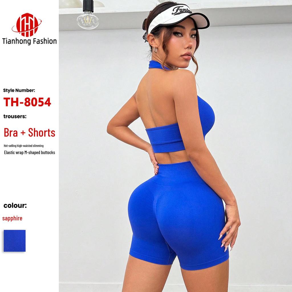2025 Euro-Amerikanisches Nahtloses Geripptes Yoga-Set: Wunderschöner Rücken Sport-BH & High Waist Shorts