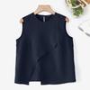 VONDA Women Round Neck Sleeveless Irregular Splits Casual Tank Tops