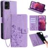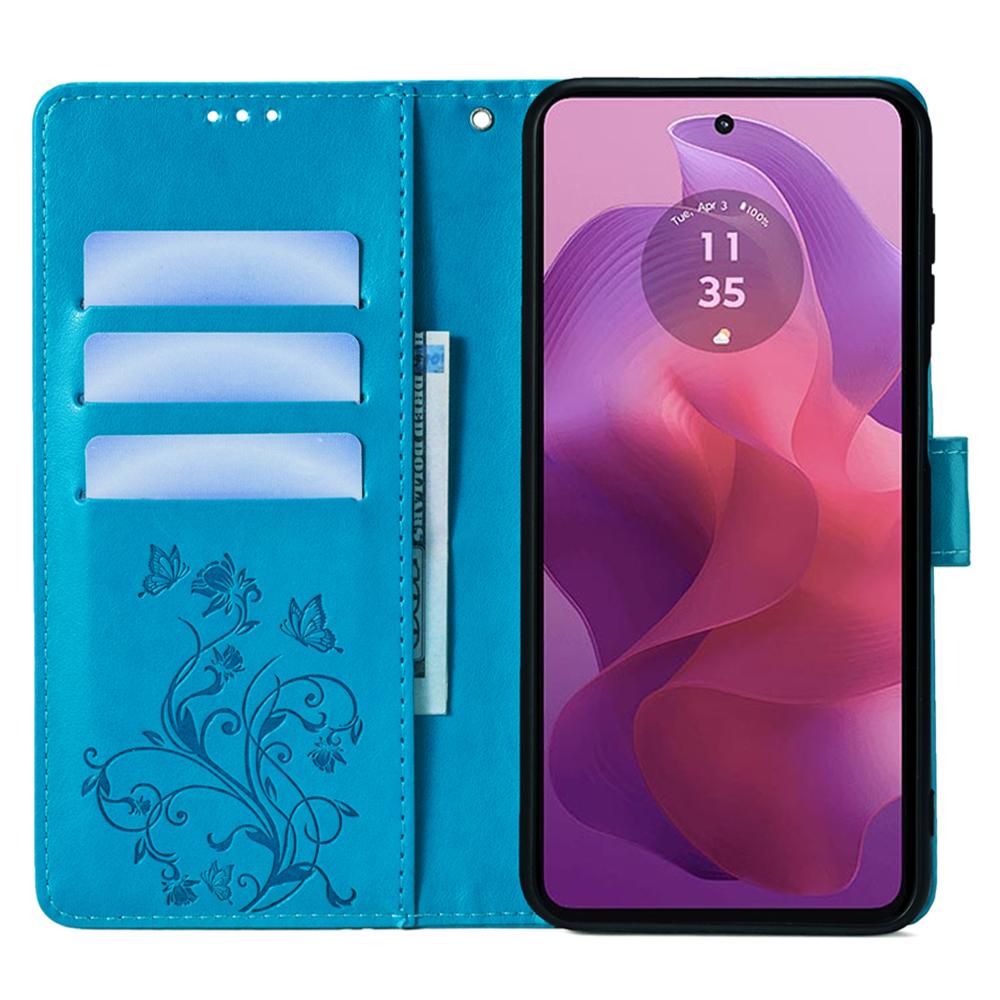 Für Motorola Moto E14 4G/G04 4G/G04s 4G/G24 4G Lederhülle Brieftasche Kartenfächer Schmetterling Blume Handyhülle mit Riemen