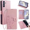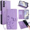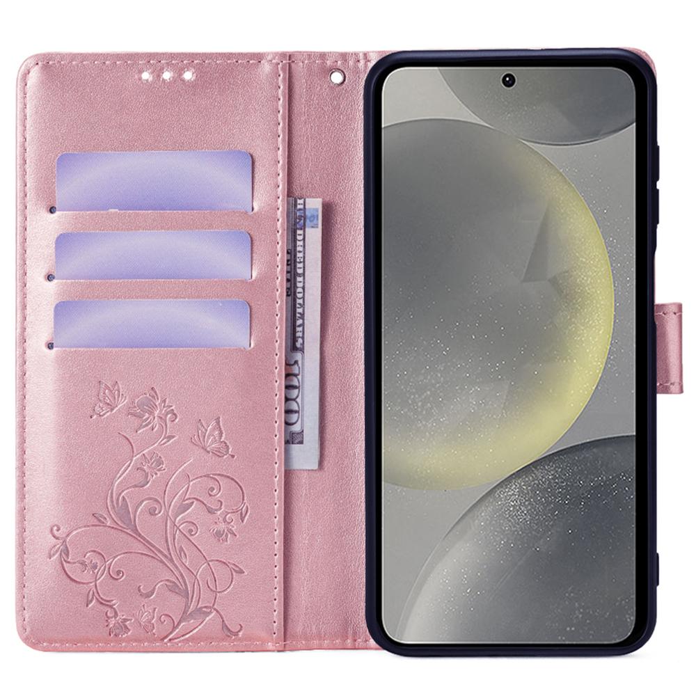 Für Samsung Galaxy S24+ Hülle Schmetterling geprägte Leder Brieftasche Handyhülle mit Handschlaufe