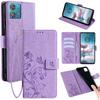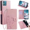 Für Motorola Edge 40 Neo 5G Handyhülle mit Handschlaufe Leder-Klapphülle mit Schmetterling-Blumen-Prägung
