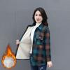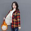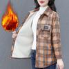 Women's Autumn Velvet Long Sleeved Warm Shirt, Middle-aged Mother's Plus Size Casual Plaid Jacket