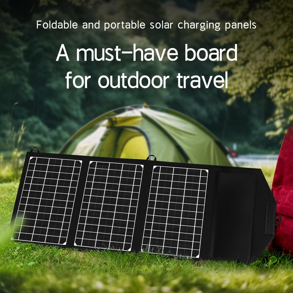 Ein faltbares Solarpanel, ein tragbares Solarladegerät mit zwei USB-Anschlüssen, geeignet für tragbare Kraftwerke, Powerbanks,