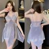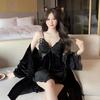 Sternenstaubgoldener Samt Damen-Zweiteil-Nachthemd mit Brustpolstern und Schmetterlingsdesign