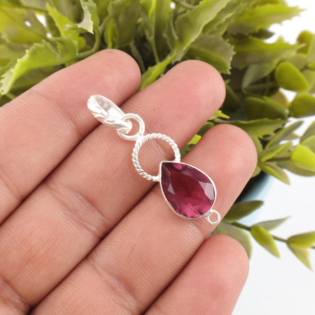 Rhodolith Edelstein Schmuck, Handgefertigter Silberanhänger, 925 Massiv Sterling Silber Anhänger für Muttergeschenk