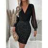 2024 Grenzüberschreitendes Damen-Schlankheitskleid mit Mesh-Ärmeln