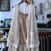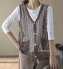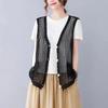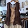 Retro Künstlerische Lochstrickweste – Damen Lockerer Baumwoll-Leinen-Cardigan