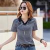 Sommer Damen T-Shirt POLO Kragen gestreift Revers bequemes lässiges Kurzarm-T-Shirt