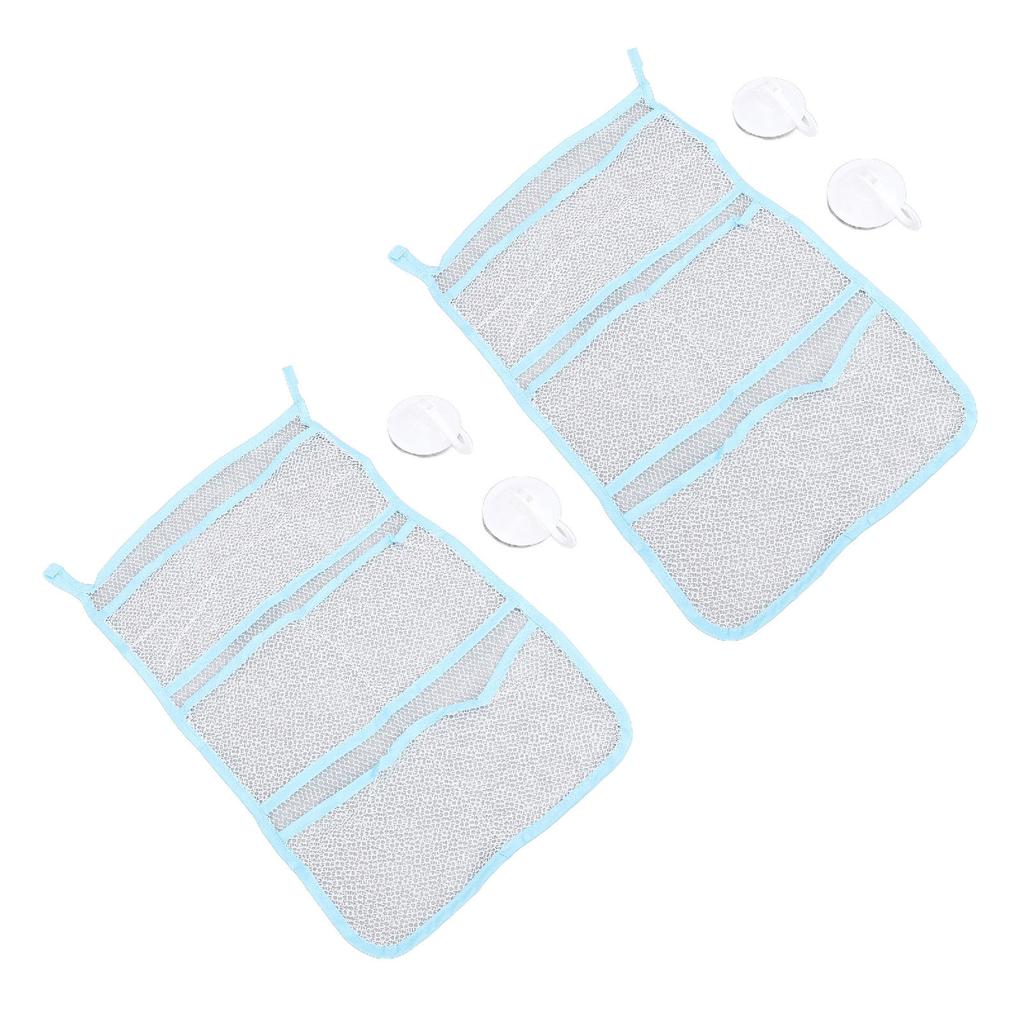 2 Set Bathroom Toiletries Storage Mesh Bag Hanging Net with Multi Pockets Suction Cup