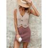 Damenrockanzug für Frühling und Sommer, gestrickte Weste mit V-Ausschnitt, Halbkörperrock, modisches Rockset in Volltonfarbe