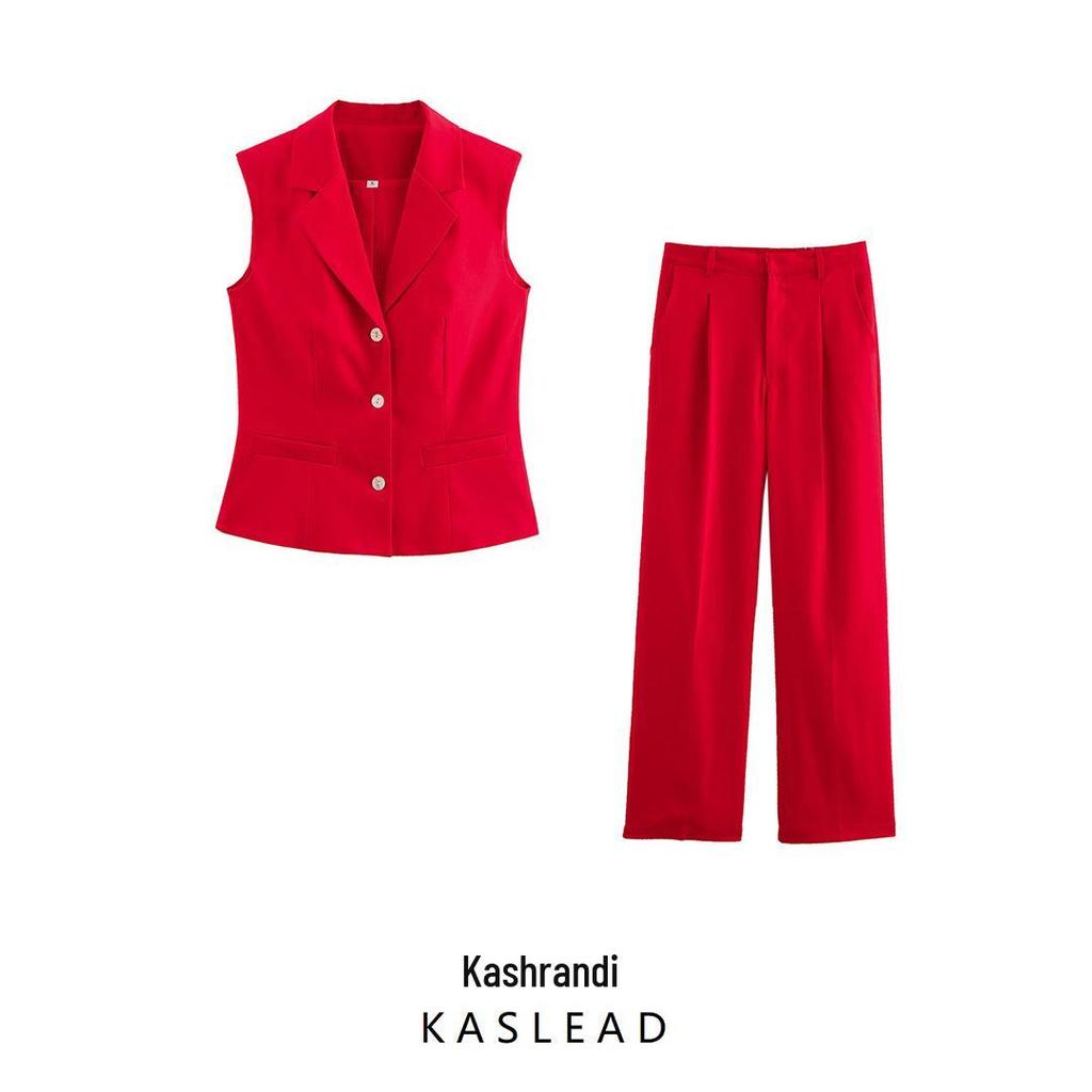 2025 Spring Women's European & American Style Red Suit Vest and Long Pants Set
