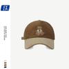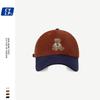 Koreanische Niedliche Cartoon Bär Bestickte Baseballkappe für Damen im Winter Kord Studentenmode Spleißen Kontrastfarbe Baseballkappe