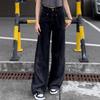 2024 Autumn Plus Size Women's Retro High Waist Wide Leg Jeans - Slimming Straight Fit