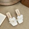 Perlenbesetzter dicker Absatz Schleife transparente hohe Absätze Sommer neue Damen Sandalen mit eckiger Spitze Spitze coole Slipper