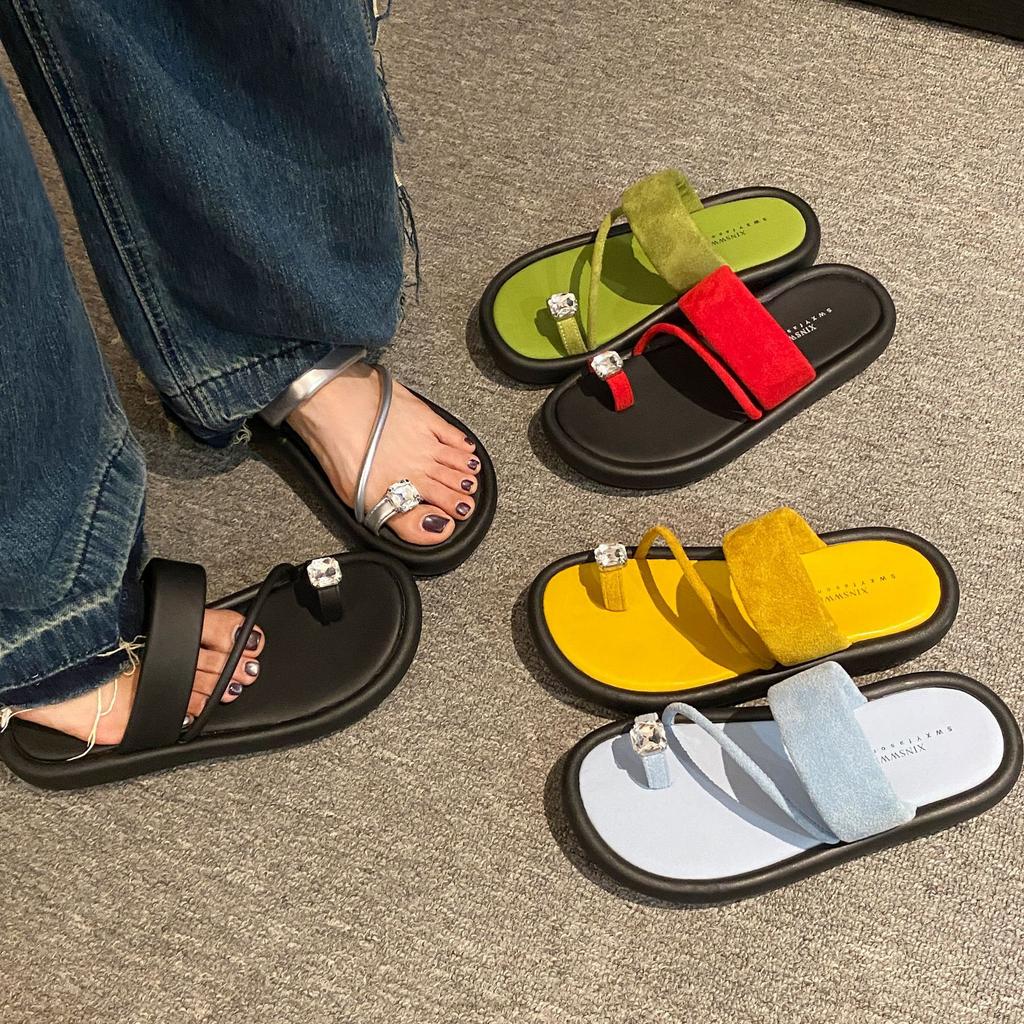 Zehentrenner-Hausschuhe mit Zehensteg für Damen-Oberbekleidung Sommer neue dicksohlige modische vielseitige coole Hausschuhe