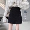 Highlights Damen Schwarzer Wollrock mit Hoher Taille in Übergröße - Petite, Kurz für Herbst/Winter 2025