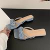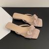 Sanfte Schleife mit coolen Pantoffeln Damenoberbekleidung Rock Zehenfrei Quadratische Zehenpartie Dicke Absätze Sandalen