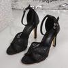 Neue Damenschuhe Fischmaul Stiletto High Heels Mesh durchbrochen offene Zehen Schnalle durchbrochen einfarbige Sandalen Damen