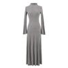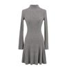 Elegant High Neck Knitted Dress - Autumn/Winter Slim Fit, Solid Color, High Waist Umbrella Skirt.