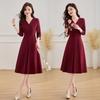 Elegantes Midikleid in V-Ausschnitt und Unifarbe mit langen Ärmeln - Frühling 2025
