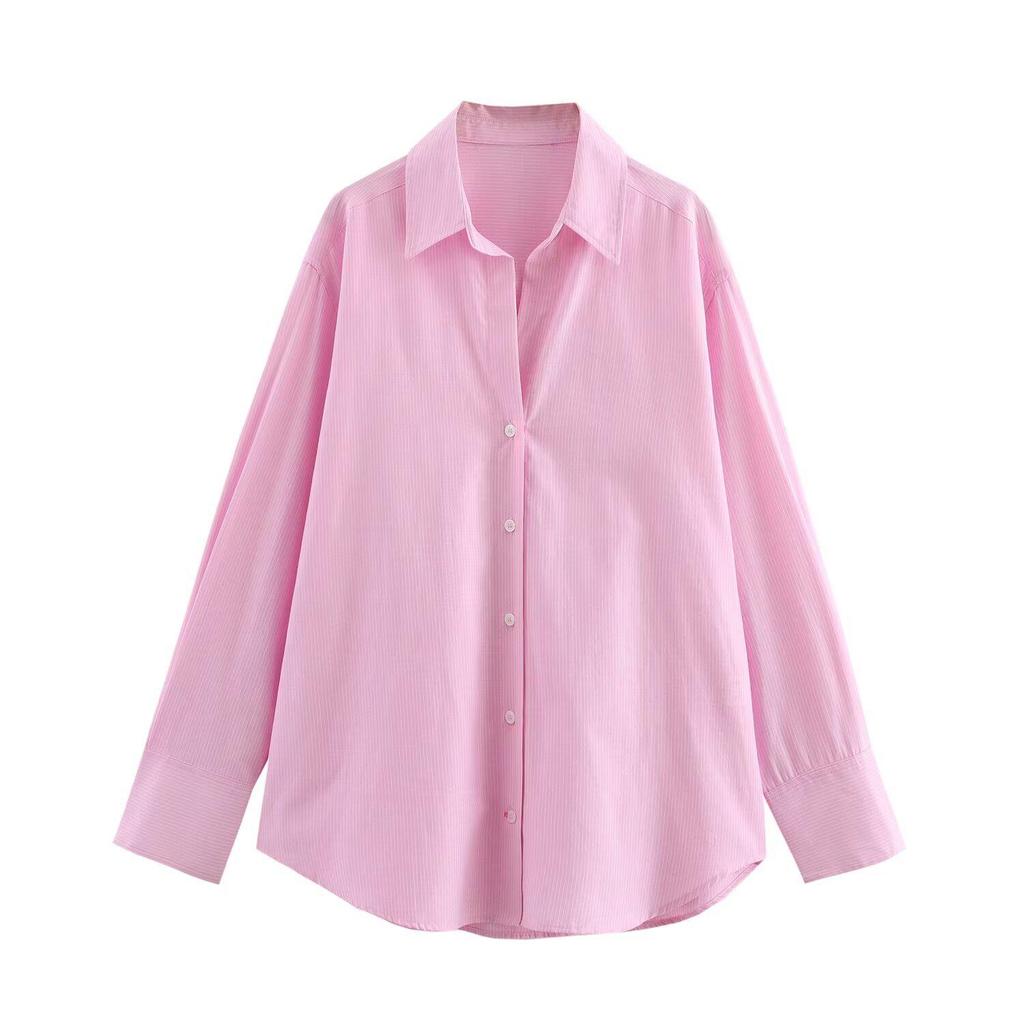 2025 Spring Women's Casual Striped Oxford Shirt with Turn-Down Collar