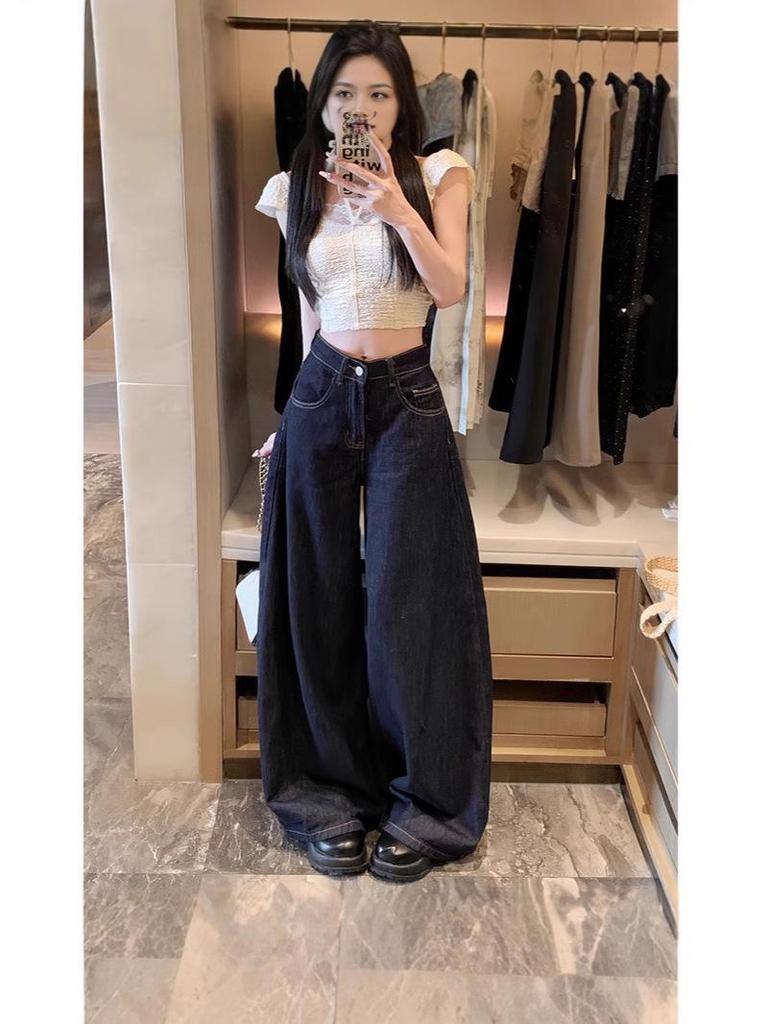 Plus Size High Waist Wide Leg Denim Pants - Women's Summer Trendy Loose Fit
