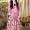 Schickes unregelmäßiges Kurzarm-Top & geblümter hochtaillierter Midi-Rock Set