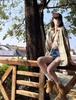 Damen Gelb Kariert Französische Jacke Bluse - Petite Größe, Langarm, Frühling/Herbst 2025