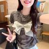 Gray Lace Bow Short Sleeve T-Shirt - Women's Summer Hot Girl Style