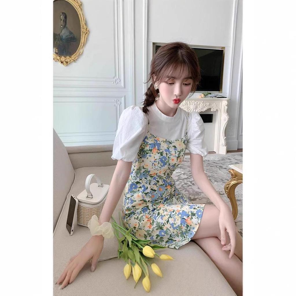 2024 Sommer Schlankmachend Floral Petite Damen Zweiteiliges Kleid Set